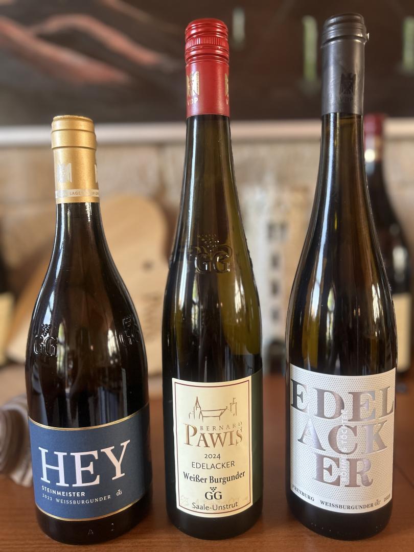 Die VDP.Weingüter Böhme & Töchter, Hey und Bernard Pawis legen in dieses Paket je eine Flasche ihres Weißburgunder VDP.GROSSEN GEWÄCHS®. Mit dieser Auswahl kosten Sie Weine aus gleich zwei VDP.GROSSE LAGEN®: Dem Freyburger Edelacker und dem Naumburger Steinmeister. Drei Weißburgunder, die individueller nicht sein könnten und trotzdem typisch für ihre Herkunft sind.
